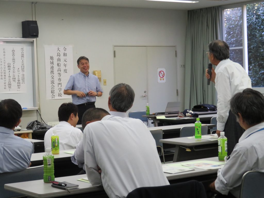 また、広島市立大学大学院情報科学研究科システム工学専攻の石光俊介先生による特別講演『産学官連携による共同研究・受託研究のメリットと事例紹介~農水省と電機メーカとセンサ開発、自動車メーカと音開発~』が行われました。出席した会員は,講演を興味深く聴いた後,それぞれに交流を深めました。