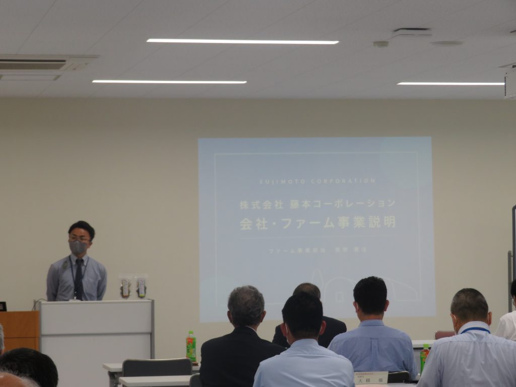 総会の後,株式会社藤本コーポレーションファーム事業部担当の熊野貴法様と,帝人株式会社岩国事業所事務室長の石貝剛様による会員紹介が行われました。