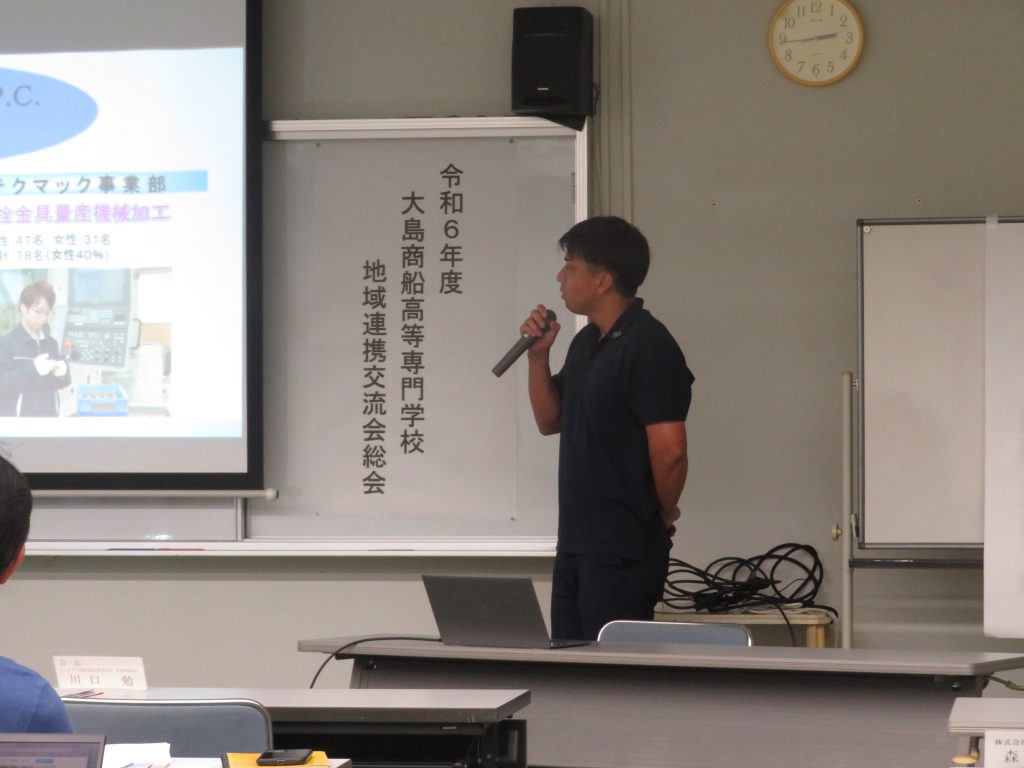 総会の後、株式会社カワトT.P.C. 管理部品質・安全G グループリーダーの原田 克彦様による会員紹介が行われ、続いて、中村翼大島商船高専地域協力センター長による事業提案が行われました。
